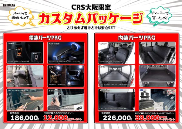 CRS大阪 清水です‼今回は、CRS大阪【限定】カスタムPKGについてご案内いたします‼