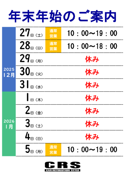 【年末年始の休業期間】
