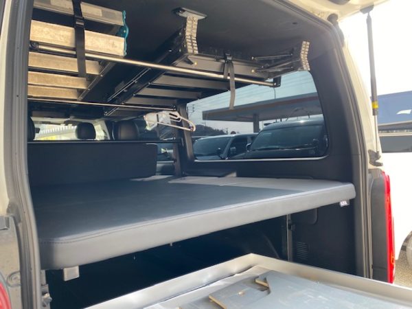 ベッドキットもそのまま使え、車内天井にも脚立を積み込めるようにしております。