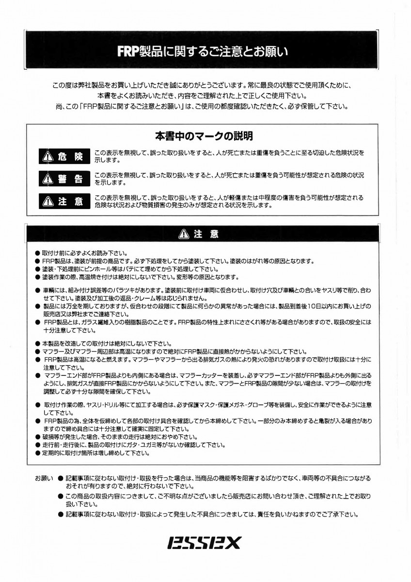 ESSEXエアロのVer.シリーズのサイドステップ。 サイドライナーと違い、少し大きめな作りなので「ステップ」という名称を付けました。 前後にフェンダーアーチを延長させたプレスラインを入れ、全体のシルエットは立体的な弓なり形状。 リアエンドにアクセントを付ける為に、ダクトフィンを入れています。 【ご購入時の注意事項】 ●大型商品の為法人宛、屋号のある建物、西濃運輸支店止めのみ対応。 ●法人宛西濃支店止めであっても沖縄県・または離島への配送料金については都度お見積りとなります。 ご購入前にお問合せください。 ●大型配送品は個人宅配送ご希望される場合、別途追加料金が発生します。 ●各配送については必ず送料規定をご確認の上ご購入をお願いいたします。→🔗送料区分 ●その他、ご購入時は必ず🔗こちらをご一読ください。 商品コード: es-1003 ES サイドステップVer.II FRP製 ■ハイエース/レジアスエース 全年式対応 販売価格:¥58,300 送料 ¥5,280 ※東北、北海道、九州、沖縄は別途送料が加算され、表示金額とは異なります 数量 在庫 9 カートに入れる ブランド ESSEX 適合情報 ハイエース/レジアスエース ナロー・ワイド共通 全年式対応 スーパーロング装着不可 配送サイズ 配送区分:🔗E その他注意事項ご確認下さい。 関連カテゴリ: ハイエースカスタムパーツ ハイエースカスタムパーツ > 外装カスタムパーツ ハイエースカスタムパーツ > 外装カスタムパーツ > エアロパーツ サイド ブランド別 > ESSEX ツイート