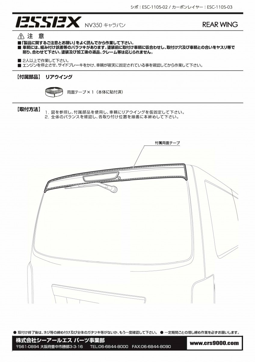 キャラバンのリア部分をスタイリッシュに変更させるリアウィング。 シボタイプとカーボンレイヤータイプのデザインがあり 到着後すぐ装着が可能です。 【製品情報】 ABS製 付属の両面テープにて装着してください。 商品を装着後でもハイマウントストップランプの交換は可能ですよ! 【適合情報】 NV350キャラバン キャラバン 1型~3型 標準幅 標準ルーフ用 【カーボンレイヤ―とは】 カーボン繊維の綾織柄を、特別な工法でリアルに再現したAES。 水転写のプリントとは違い、立体的な起伏もあり、リアルな手触りを実現しました。 【ご購入時の注意事項】 ●大型商品の為法人宛、屋号のある建物、西濃運輸支店止めのみ対応。 ●法人宛西濃支店止めであっても沖縄県・または離島への配送料金については都度お見積りとなります。 ご購入前にお問合せください。 ●大型配送品は個人宅配送ご希望される場合、別途追加料金が発生します。 ●各配送については必ず送料規定をご確認の上ご購入をお願いいたします。→🔗送料区分 ●その他、ご購入時は必ず🔗こちらをご一読ください。 商品コード: esc-1105-01~esc-1105-st ESSEX リアウィング シボ/カーボンレイヤ― ■キャラバン NV350キャラバン 販売価格:¥39,600 送料 ¥2,860 ※東北、北海道、九州、沖縄は別途送料が加算され、表示金額とは異なります カラー 選択してください カーボンレイヤー シボ 数量 在庫 3~5 カートに入れる ブランド ESSEX 適合情報 NV350キャラバン キャラバン 1型~3型 標準用 配送サイズ 配送区分:🔗D その他注意事項ご確認下さい。 関連カテゴリ: キャラバン キャラバン > エクステリアパーツ ブランド別 > ESSEX ツイート